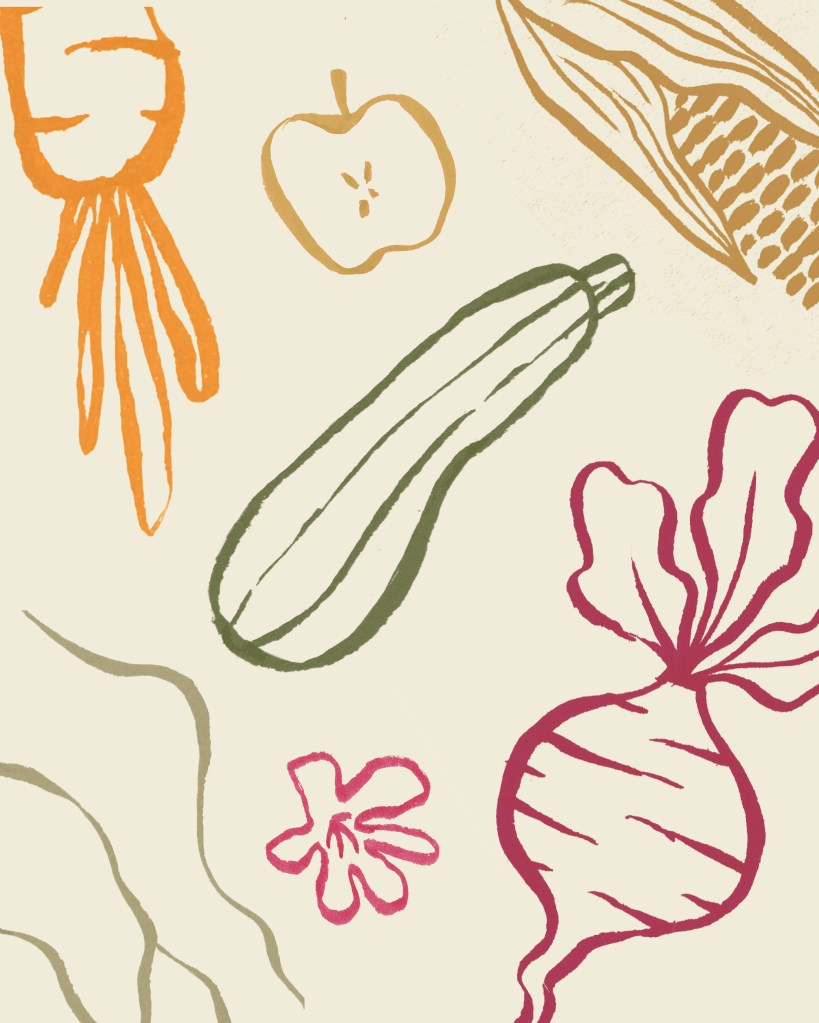 La grafica è ricca di disegni fatti a mano che prendono i colori dai contenuti dei pack, così da valorizzarli al meglio.