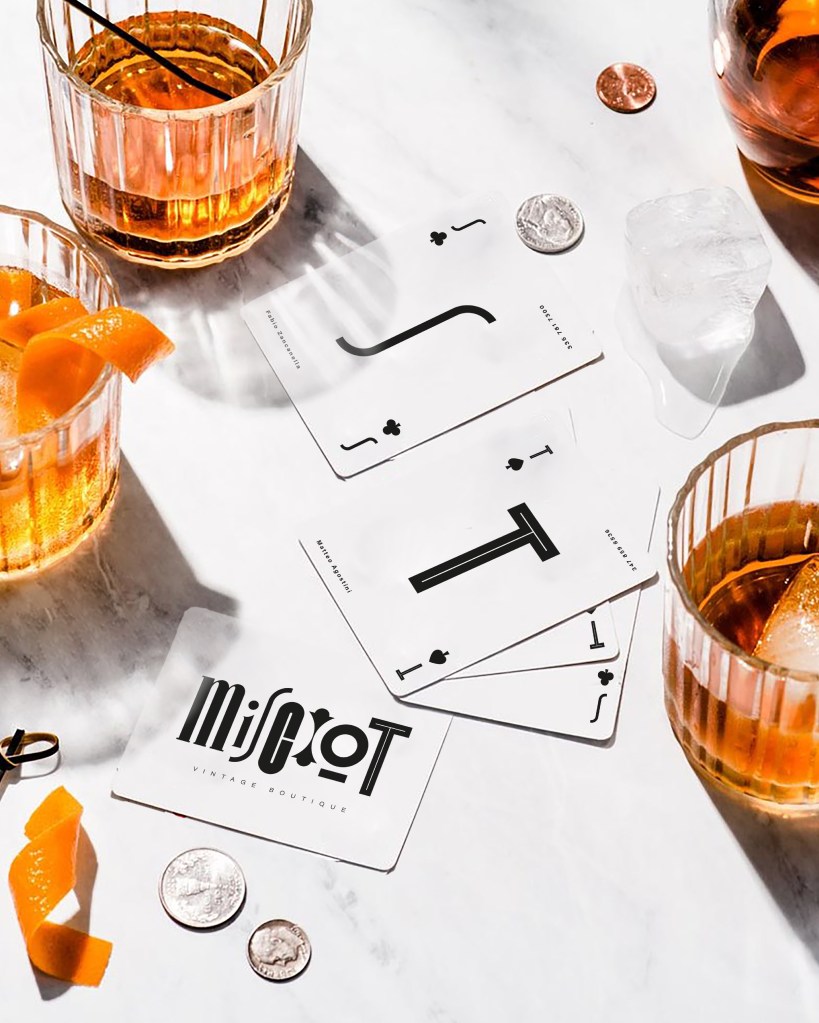Da Misciot derivano anche i biglietti da visita creati sotto forma di carte da gioco: mescolandole ci regalano ogni volta una carta con una lettera in un font diverso.